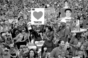 7月31日,泰国民间政治团体反独裁民主联盟(反独联)支持者身着红色上衣在首都曼谷的王家田广场举行集会,支持流亡海外的前总理他信,同时收集赦免他信请愿书签名。 新华社/法新