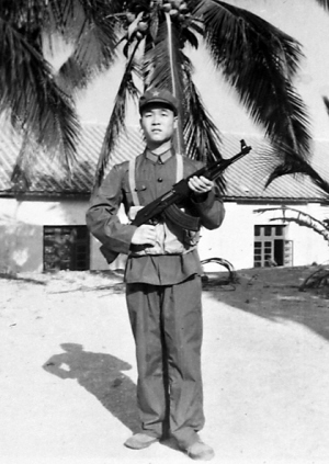 | 刘付坤昌当年在小岛站岗。李三红 翻拍 |