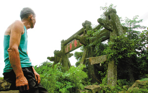 这次在澄迈大生美村小学旁边发现的是一座不久前被车撞倒的节孝坊。每次看到牌坊被破坏,沈志成都痛心不已。
