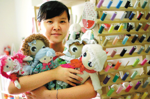 王梦巍说,做手工也让自己的性情变得温和多了,自己以前性子特别急,做事很毛躁。“有的时候眼看着一个娃娃就要完成了,却发现针脚缝错了,扔了吧舍不得,就这么凑合着吧心里又难受,只能拆了重做。”就在拆了缝,缝了拆之间,急躁的王梦巍被磨练得有耐心了。