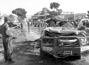 一支警察车队在行驶途中时,武装人员遥控引爆一枚安置在路边垃圾桶内的炸弹,致死12人,另有29人受伤。