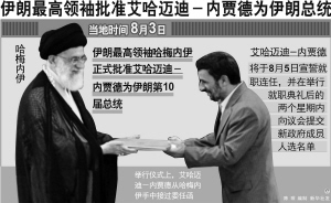 伊朗最高领袖大阿亚图拉赛义德·阿里·哈梅内伊8月3日正式批准马哈茂德·艾哈迈迪—内贾德就任总统。