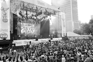8月2日,墨西哥首都墨西哥城举办主题为“活力之都———墨西哥城”大型露天广场演唱会。目前正值暑期旅游旺季,该演唱会是墨西哥城政府为了促进旅游业而举办的。 新华社记者 鲍菲菲 摄 墨西哥城: 音乐会促旅游