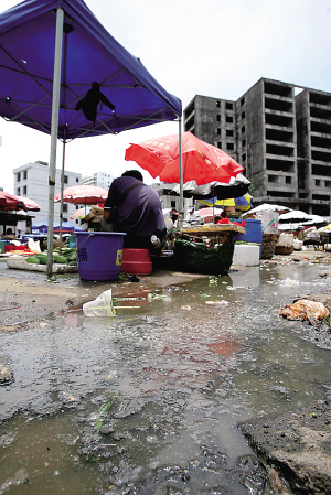 | ↑8月2日,市场内污水横流、臭气熏天。 |
