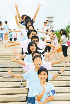 7月31日,一个由全国各地130名青少年组成的夏令营抵达三亚,前往南山文化旅游区,感受生态文化并品尝素斋。 进入暑期,三亚迎来一批批参加夏令营的学生,这些学生在大海边、在森林里、在青山绿水之间学到很多知识,扩大了视野。 本报记者 程范淦 通讯员 陈文武 摄