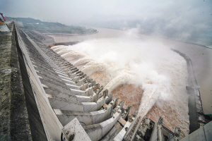 | →截至8月4日14时,三峡入库流量已达每秒45000立方米,三峡船闸停止通航。面对入汛以来长江最大流量洪水,中国三峡总公司已做好相应准备,目前已开启多个泄洪孔泄洪。