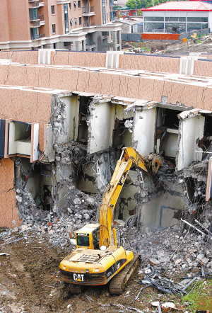 上海那栋 倒覆楼房开始拆除 8月5日,上海市闵行区“莲花河畔景苑”倒覆楼房开始拆除,整个拆除工作预计一周左右完成,之后,万科房地产有限公司将作为第三方托管未倒覆楼房的后续建设。 新华社记者 裴鑫摄