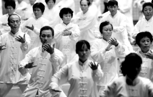为迎接8月8日全民健身日,8月5日晚,琼海市举行全民健身比赛彩排。图为市民在进行太极拳表演。特约记者 蒙钟德 摄