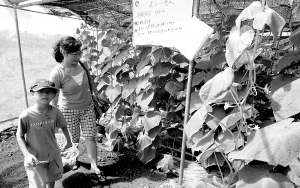 | 海口市龙浩生态示范园的蔬菜大棚内,游客在采摘荷兰小青瓜。