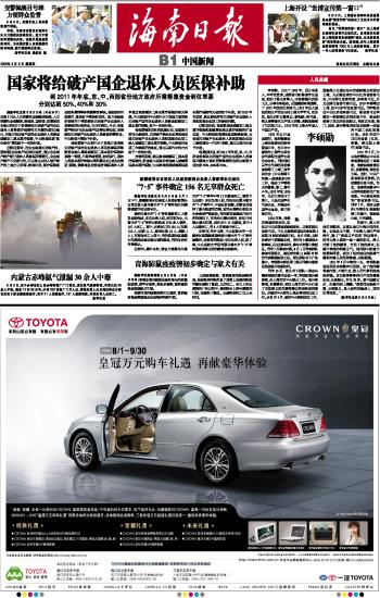 海南日报 中国新闻 009 2009-08-061 2009年08月06日 星期四