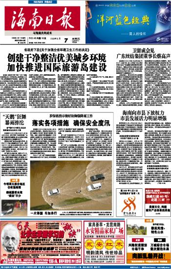 海南日报 首版 001 2009-08-071 2009年08月07日 星期五