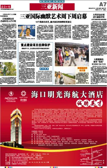 海南日报 三亚新闻 007 2009-08-071 2009年08月07日 星期五