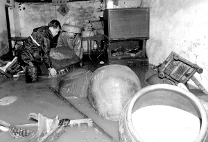 约3时半,村民家里的一些家具、被褥、锅碗、米缸等都漂起来了。但是全村150多人也都安全撤到村边一片坡地上。