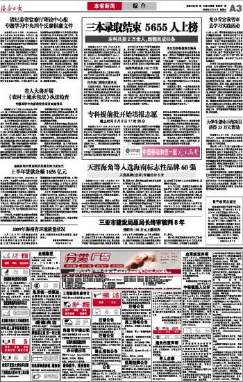 海南日报 本省新闻 003 2009-08-081 2009年08月08日 星期六