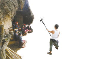 | 来自香港的导演王永森和他的搭档在拍摄村里黎族村民们的日常生活。 |
