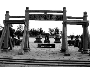 | 位于文昌市文教镇铜斗村铜斗山南的邢宥墓,是邢宥与夫人林氏异穴合葬墓。墓占地750平方米,分前庭、阳埕、拜亭和墓穴,地面有神道、碑碣、列兽等,是一座大型明墓,由当地政府修复。(资料照片) |