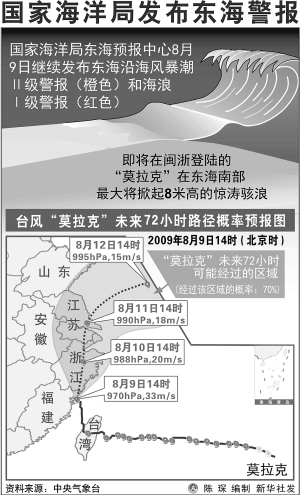 “莫拉克”在东海将掀起8米狂浪
