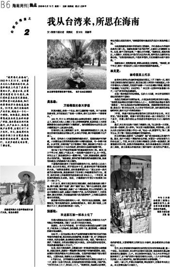 我从台湾来,所思在海南
