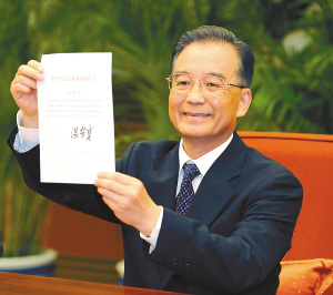 | 8月10日,温家宝总理签署了任命崔世安为中华人民共和国澳门特别行政区第三任行政长官的国务院第558号令。 新华社记者 饶爱民 摄 |