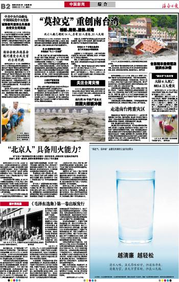 海南日报 中国新闻 综 合 010 2009-08-111 2009年08月11日 星期二