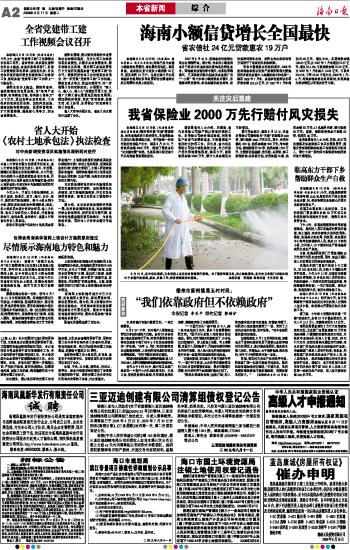 海南日报 本省新闻 综 合 002 2009-08-111 2009年08月11日 星期二