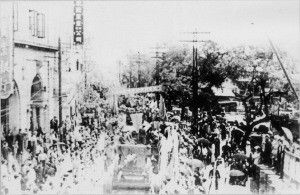 | 1950年4月23日,海口市解放。图为海口群众欢迎解放军入城的场景。 |