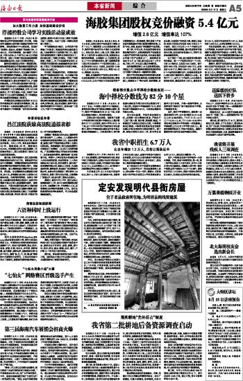 海南日报 本省新闻 005 2009-08-121 2009年08月12日 星期三