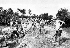10万多军民组成的筑路大军浩浩荡荡陆续开进了中部山区。从全岛各地应征过来的民工,挑着简单的行李,靠两条腿走到工地,日行夜宿,有的在路上竟走了整整一个星期。