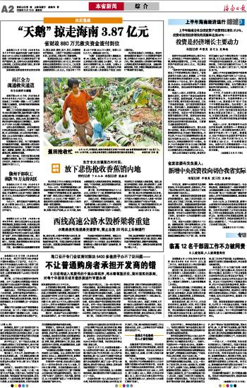 海南日报 本省新闻 002 2009-08-131 2009年08月13日 星期四