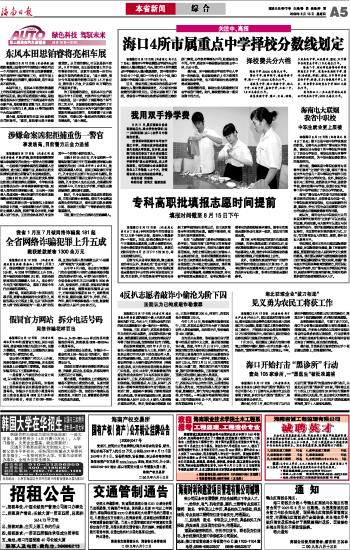 海南日报 本省新闻 005 2009-08-131 2009年08月13日 星期四