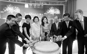 8月14日,香港“恒中国”与“恒香港”两只ETF基金在台湾挂牌上市交易,嘉宾们击鼓庆祝。这两只基金发行后,台湾证券市场投资人将可在台湾证券交易所直接以新台币交易两只ETF。 新华社发
