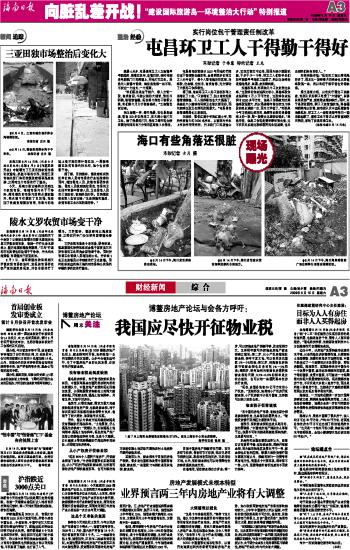 海南日报 向脏乱差开战 003 2009-08-151 2009年08月15日 星期六
