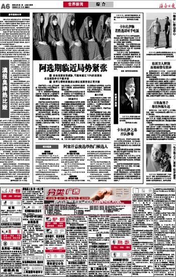 海南日报 世界新闻 006 2009-08-151 2009年08月15日 星期六