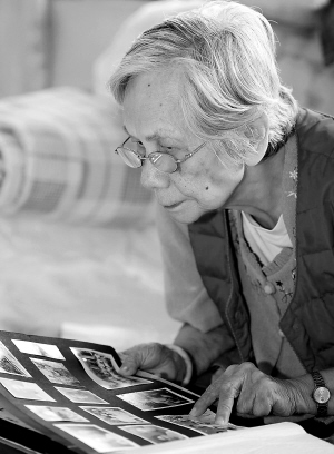 | 86岁的何佩玲,在家中翻看照片回忆往事。 |