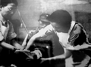| 宋美龄巡视野战医院为伤兵敷药。(资料图片) |
