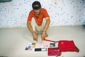 办案民警决定见机行事,由后海边防派出所教导员蒋志川和一名民警乔装打扮成三轮车司机及受害人朋友,同坐一辆三轮摩托车,前往与犯罪嫌疑人碰面。就当犯罪嫌疑人在海棠湾镇三合小学门口露面,被乔装打扮民警当场扑到在地。民警当场从其身上缴获罗某被抢的红色背包,内有人民币1658元,诺基亚手机两台、银行卡四张(内有存款5万元)及身份证、驾驶证等全部证件。