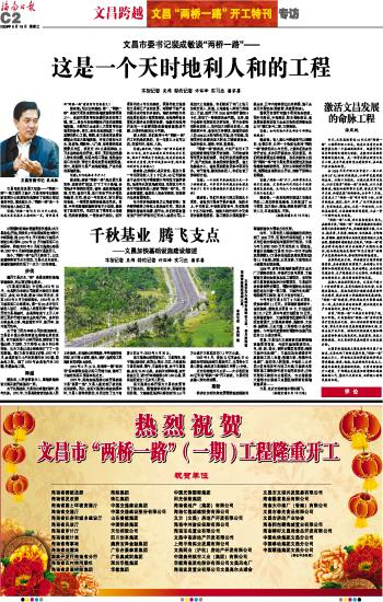 | 海南日报 文昌“两桥一路”开工特刊 018 2009-08-191 2009年08月19日 星期三 |