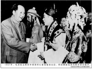王英蓉开心地笑起来。她说,演出结束后,毛主席、刘少奇、周总理等中央首长走上舞台跟演员们一一握手。记得毛主席走到陈华跟前,伸出手来,握着陈华的手说:“演得好!”那一瞬间,咔嚓一声,一代领袖与琼剧的一段美好渊缘就此定格。这不仅是琼剧的光荣,也记录了中国地方戏剧在共和国文艺戏剧界的地位。