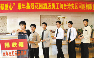 8月20日,海口康年皇冠酒店员工向台湾受灾同胞捐款。这笔款项将通过红十字会转交给灾区同胞。 本报记者 古月 摄