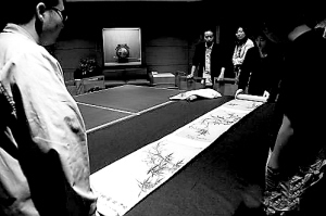 | 苏博工作人员展示“七君子图”卷轴的部分。 李克祥 摄 |