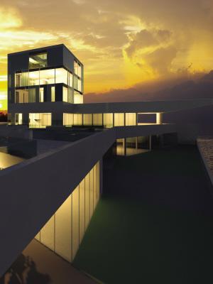 在“2158m2的两居室”中,一根柱子撑起25米长的悬空泳池