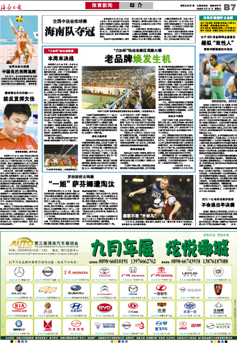 海南日报 体育新闻 015 2009-08-211 2009年08月21日 星期五