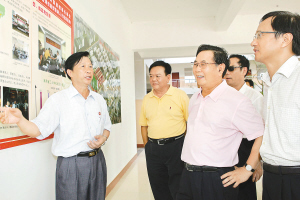 | 八月二十一日,省委书记、省人大常委会主任卫留成在定安听取省工业学校负责人汇报。 本报记者 张杰 摄