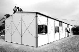 8月21日,在台湾屏东县佳冬乡,工作人员对活动板房进行最后组装。 当日,在台湾屏东县佳冬乡,工作人员完成了大陆首批援台活动板房样板房的安装,有关机构对样板房进行了空气品质检测,并接受受灾群众参观。 新华社发