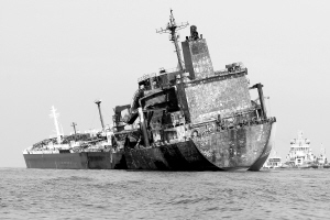 8月21日,马来西亚救援人员正式登船寻找失踪的9名中国船员。18日晚,中国台湾台塑集团所属的“立善轮”在波德森港附近的马六甲海峡航道遭一艘英国散装货轮撞击后起火。 新华社发