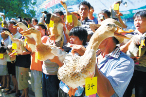 | 8月22日,咸水鸭大比拼活动现场。 本报记者 苏晓杰 摄 |