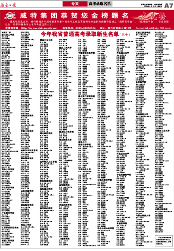 第007版:专页 高考录取名单