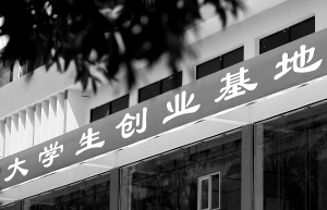 | 八月二十二日,海口某广场打出大学生创业基地的招牌,为大学生创业提供平台。