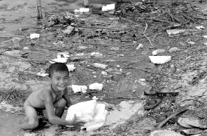 ④8月21日,临高调楼,海里的垃圾让孩子难以下水。