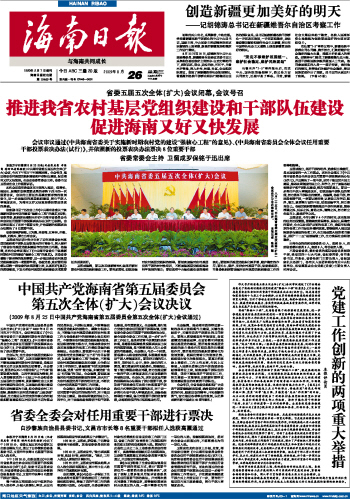 中国共产党海南省第五届委员会第五次全体(扩大)会议决议